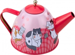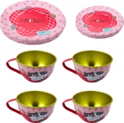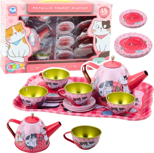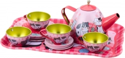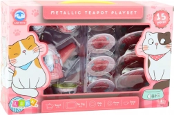 Kovinski čajni set za otroke z motivom mucke, rožnat, 15 kosov