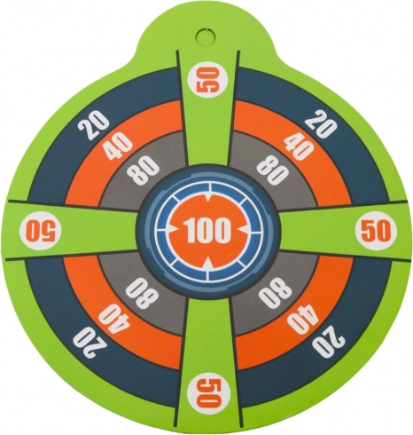 Priložena je barvna tarča, ki pomaga izboljšati natančnost in zabavo pri igri.