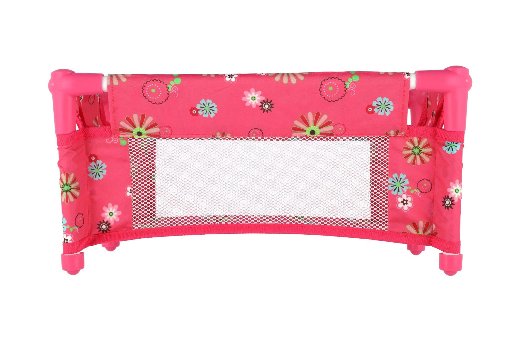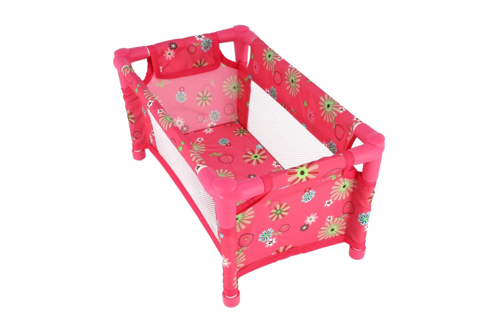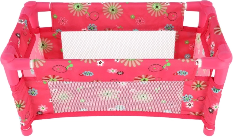 Robustna, a lahka konstrukcija iz cevi in tekstilnih panelov je kos vsakodnevni igri. Posteljica je brez vzmetnice (brez trdega dna), kar jo naredi za varen in prilagodljiv dodatek otroški sobi. Vesel cvetlični motiv v rožnatih tonih bo navdušil vsako malo mamico.