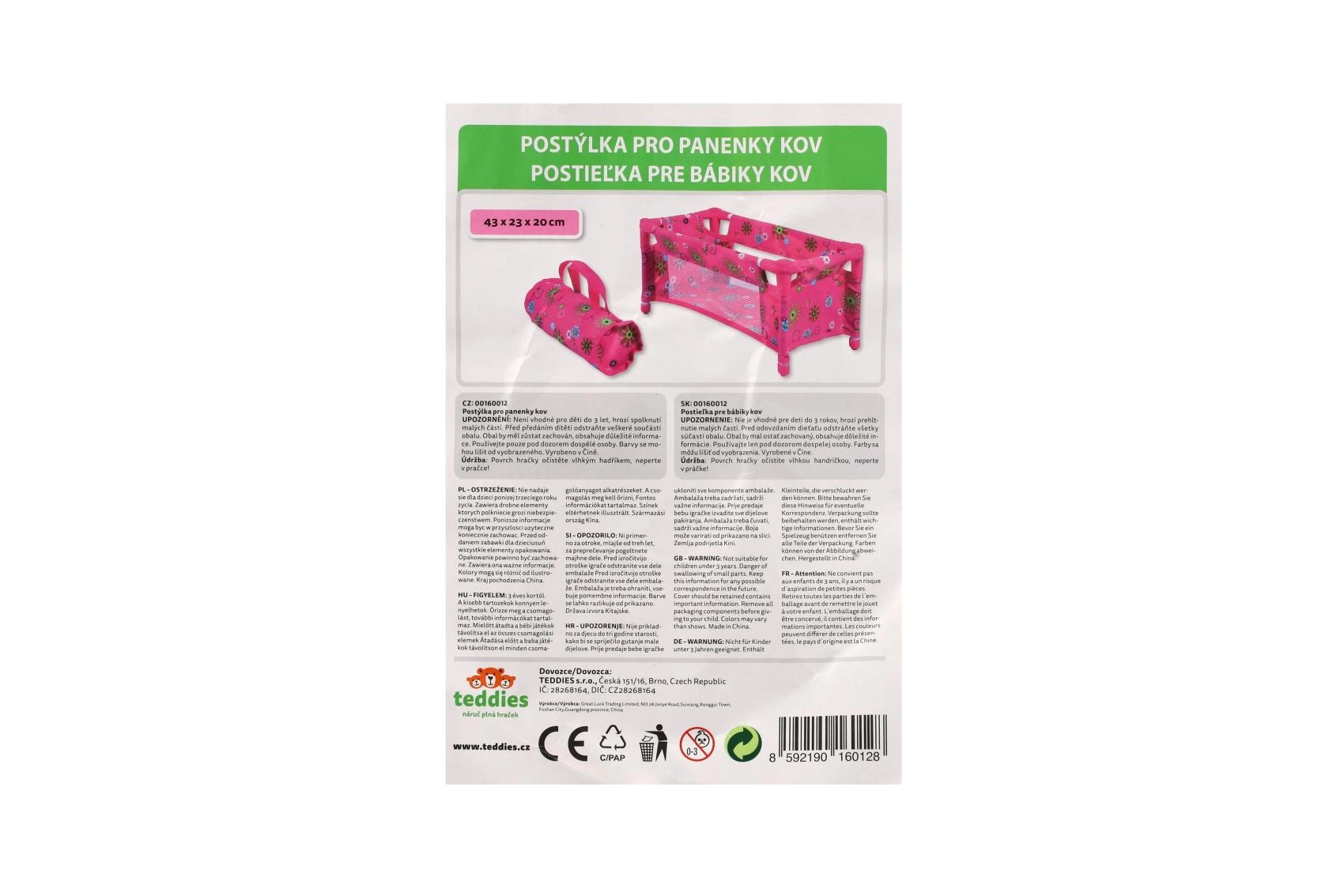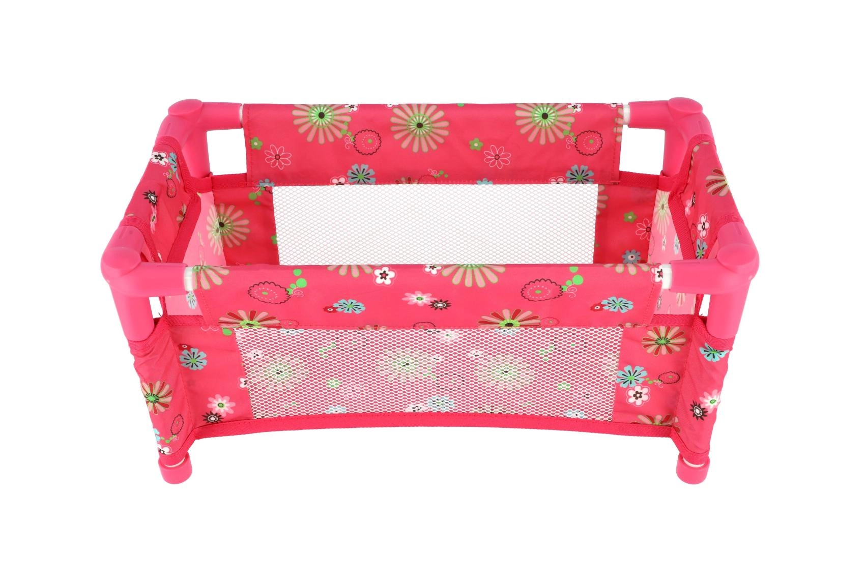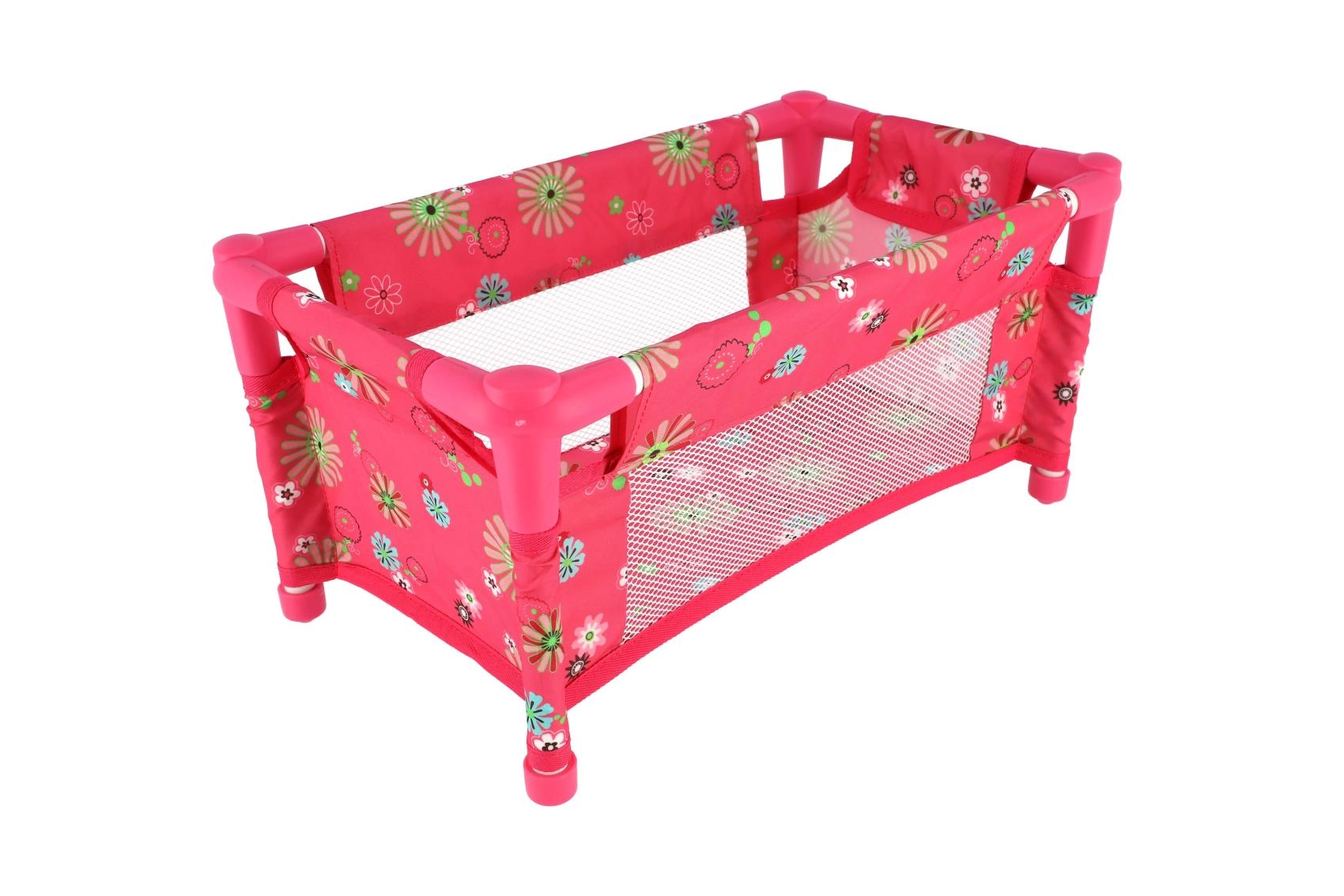 Robustna, a lahka konstrukcija iz cevi in tekstilnih panelov je kos vsakodnevni igri. Posteljica je brez vzmetnice (brez trdega dna), kar jo naredi za varen in prilagodljiv dodatek otroški sobi. Vesel cvetlični motiv v rožnatih tonih bo navdušil vsako malo mamico.