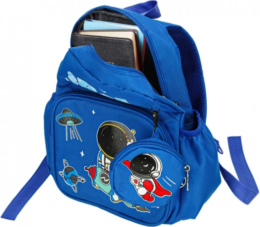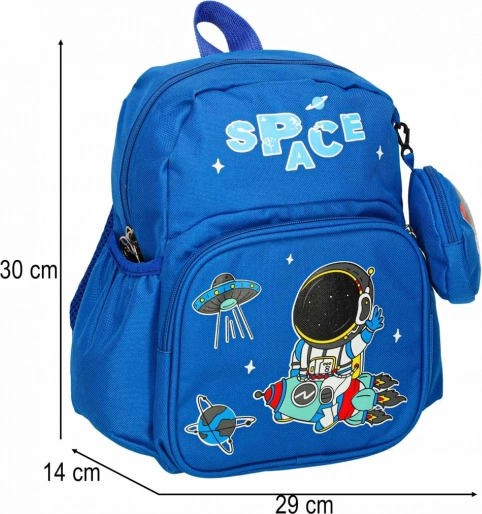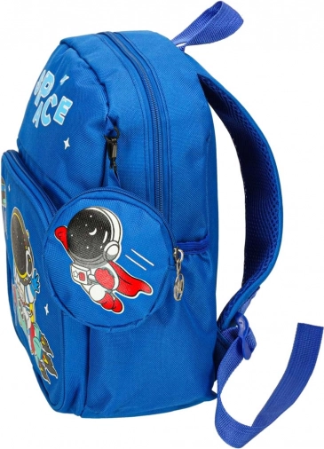 Odkrijte raznolike možnosti shranjevanja s tem otroškim nahrbtnikom. Glavni večji predal z zadrgo nudi dovolj prostora za večino potrebščin predšolskega otroka. Sprednji manjši žep je popoln za drobnarije ali malico, medtem ko okrogla torbica na sprednji strani nahrbtniku daje edinstven videz. Ob straneh so žepi, idealni za steklenico z vodo ali robčke.
