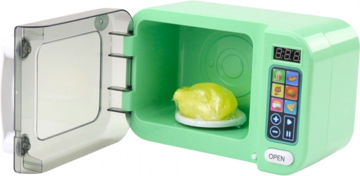 Zelena otroška mikrovalovna pečica je odlična izbira za vsakega malega kuharja, ki rad posnema odrasle in uživa v igri kuhanja. Zasnovana z občutkom za detajle, ta igrača prinaša realističen videz pravega aparata, hkrati pa je popolnoma varna in prilagojena potrebam najmlajših. Zaradi kompaktnih mer in ergonomskega dizajna odlično sede v otroške roke, upravljanje pa je zelo intuitivno.
