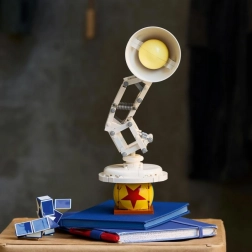Zgradite si stilsko svetilko LUXO JR., ki je zaslovela v uvodni špici studia DISNEY PIXAR. Model je popolnoma gibljiv – nagibanje senčnika, upogibanje rok in realistične »vzmeti« omogočajo nastavljanje ikoničnih poz, vključno s skokom na žogo. Del seta je tudi Pixarjeva žoga, ki se odpre in razkrije tematska presenečenja, navdahnjena s filmi Up, Neverjetni (The Incredibles), Ratatouille, Pošasti d.o.o. (Monsters, Inc.), Svet igrač (Toy Story) in Iskanje Nema (Finding Nemo).