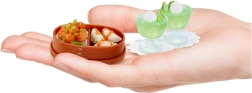 Mini igrače, velika radost! V vsaki okrogli kapsuli najdete komponente za izdelavo mini jedi ali pijače – od sestavin, smole in kuhinjskega pripomočka do drobnih dodatkov. Dovolj je, da zmešate, aranžirate, pustite min. 5 minut utrjevati na neposrednem soncu ali pod UV lučko in vaše mini delo je pripravljeno za razstavo.