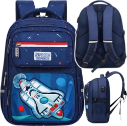 Otroški šolski nahrbtnik z vesoljskim motivom je idealna izbira za otroke, ki sanjajo o medplanetarnih dogodivščinah in želijo izstopati med svojimi vrstniki. Zahvaljujoč tematskemu potisku in veliki izvezeni raketi na sprednji strani nahrbtnik takoj pritegne pozornost in spodbuja otroško domišljijo. Ta model združuje moden videz z visoko funkcionalnostjo ter je premišljeno zasnovan v vsakem detajlu.