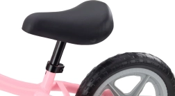 Konstrukcija z trdno jekleno okvirno cevjo in tihimi EVA gumami 12" zagotavlja gladko in udobno vožnjo brez tveganja predrtja. Nastavljiva višina sedeža (33,5–48 cm) in krmila (51–56 cm) omogoča prilagoditev poganjalca trenutni otrokovi višini. Širina krmila 41 cm in kratek doseg do ročajev podpirata zanesljivo upravljanje.