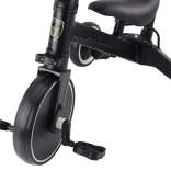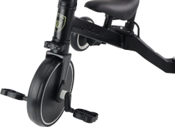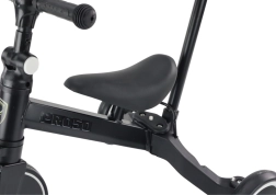 Model PRO50 je opremljen s praktičnim ročajem za vodenje, ki ga je mogoče preprosto odstraniti, ko otrok začne voziti samostojno. Zasnova omogoča vožnjo tako z razmaknjenima kot tudi združenima zadnjima kolesoma, kar poveča stabilnost na začetku učenja in omogoča nemoten prehod na bolj tradicionalno obliko kolesa.