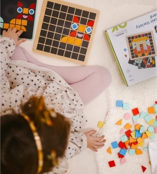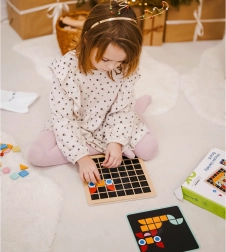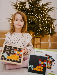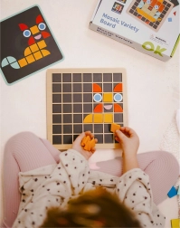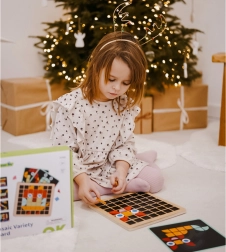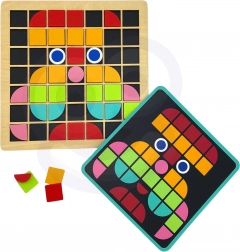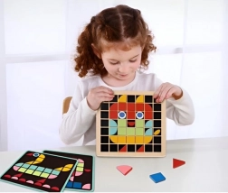 Lesena mozaika Tooky Toy je idealna igrača za razvoj ustvarjalnosti in učenja otrok. Otroci lahko sestavljajo po priloženih karticah ali ustvarjajo lastne vzorce, s čimer razvijajo domišljijo ter sposobnost razlikovanja barv in oblik.