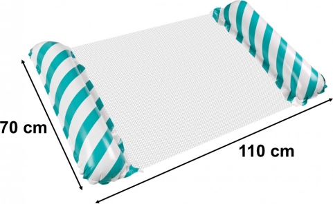 Napihljivo plažno vodno ležalnik v modro-belih črtah je idealen spremljevalec za poletje. Uživajte v udobju zahvaljujoč njegovi ergonomski obliki in enostavni prenosljivosti.
