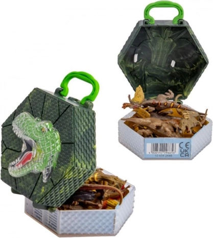 - Figurice dinozavrov v škatli z ročajem za prenašanje