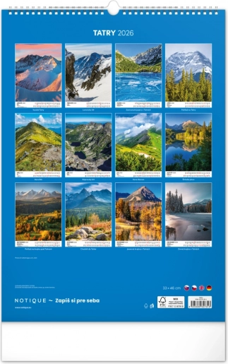 Ta koledar vas vabi v svet fascinantne tatranske pokrajine z njegovimi impresivnimi posnetki. Na fotografijah lahko uživate v znamenitostih, kot so Belijanske Tatre ali Štrbsko jezero. Poleg tega vključuje koledarij s slovenskimi imeni in prazniki ter opise v štirih jezikih, zaradi česar je ne le estetsko lep, ampak tudi praktičen.