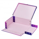 Praktičen zložljiv kovček, idealen za likovno vzgojo, igrače ali drobnarije. Enostavna sestava zahvaljujoč patentkam in okovjem.