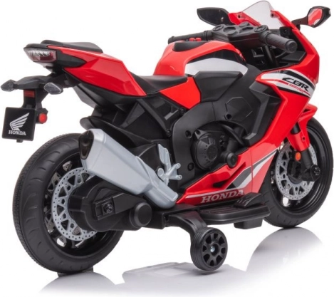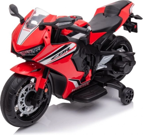 Otroški električni motor Honda CBR 1000RR v rdeči izvedbi prinaša realističen občutek vožnje s športnim motorjem. Idealen je za male motoristične navdušence, ki hrepenijo po avanturi. Z poudarkom na varnosti in stabilnosti zahvaljujoč pomožnim kolescem je primeren tudi za začetnike.