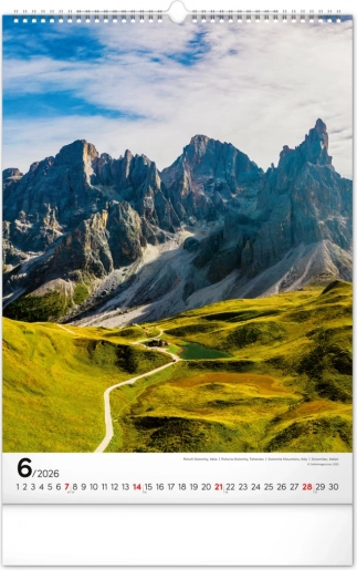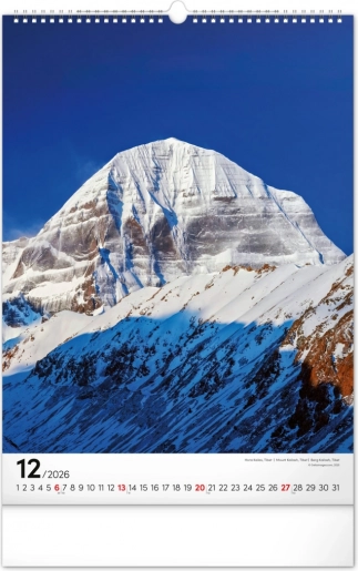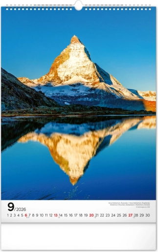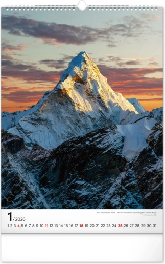 Stenski koledar Gore 2026 ponuja osupljive fotografije ikoničnih gora z vsega sveta, idealen za ljubitelje narave in pustolovščin.
