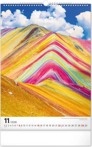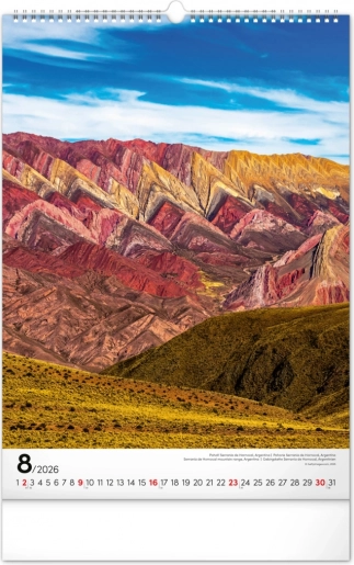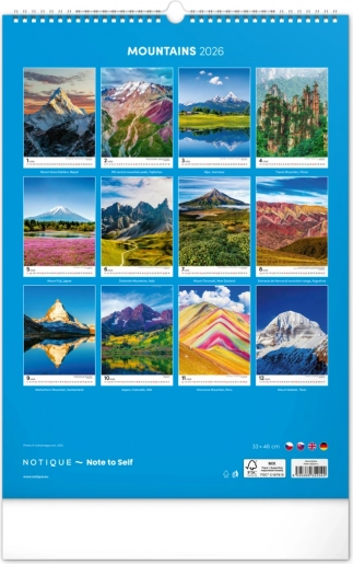 Pridobite vsakodnevni navdih s tem čudovitim stenskim koledarjem, ki vas popelje skozi pokrajine Nove Zelandije, Islandije, Francije in ZDA. Vsak mesec vas bo očaral nov pogled na veličastne vrhove, ki bodo prebudili vašo popotniško strast in prinesli mir v vaš dom ali pisarno.