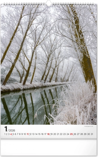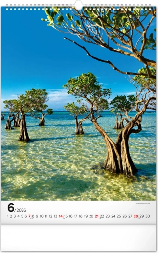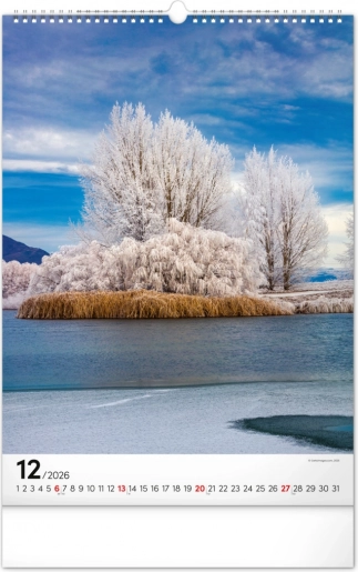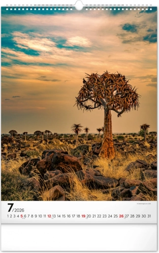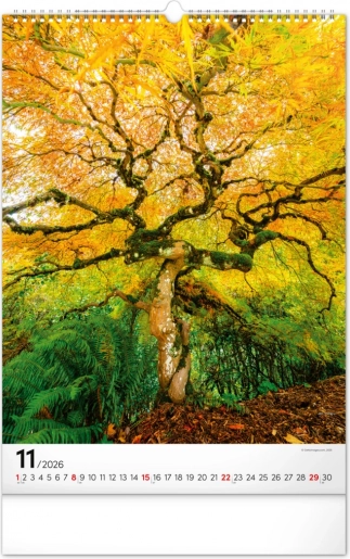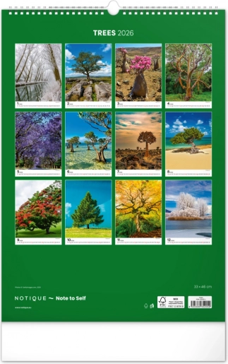 Odkrijte lepoto in mogočnost dreves iz različnih kotičkov sveta z našim stenskim koledarjem Notique Drevesa 2026. Ta koledar ponuja: