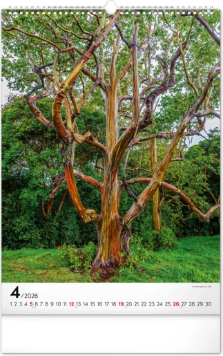 Stenski koledar z čudovitimi fotografijami mogočnih dreves z vsega sveta. Idealno za ljubitelje narave in estetskih doživetij.