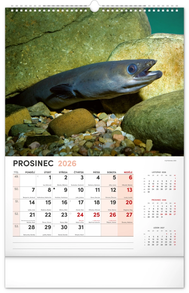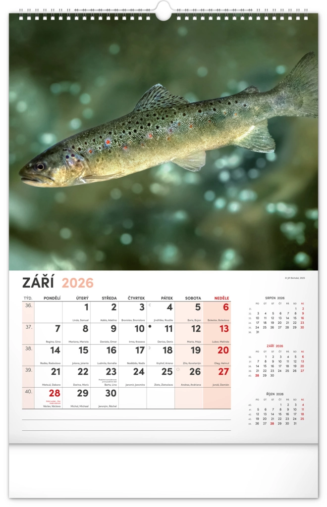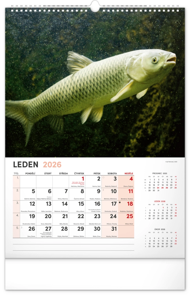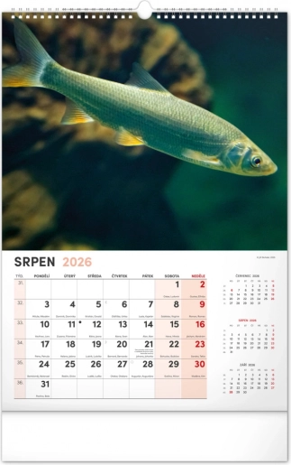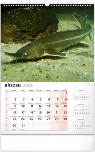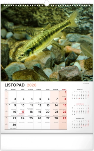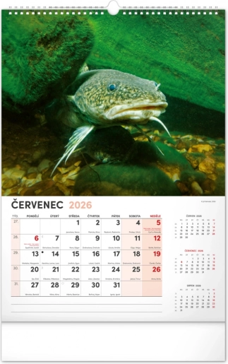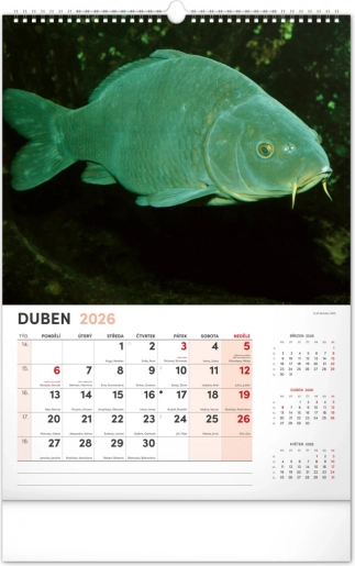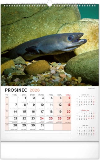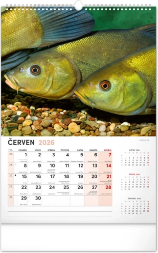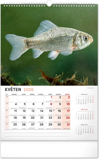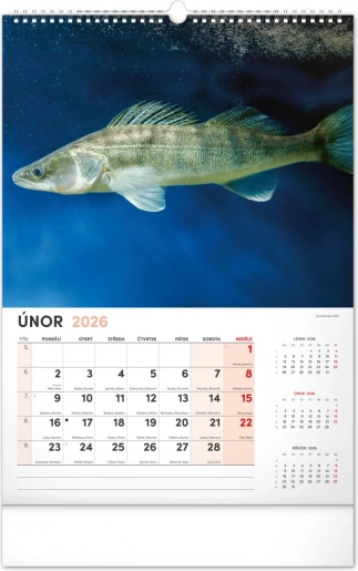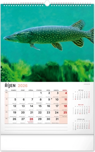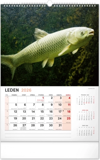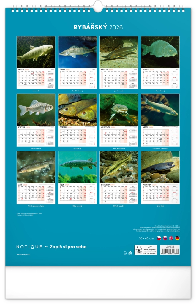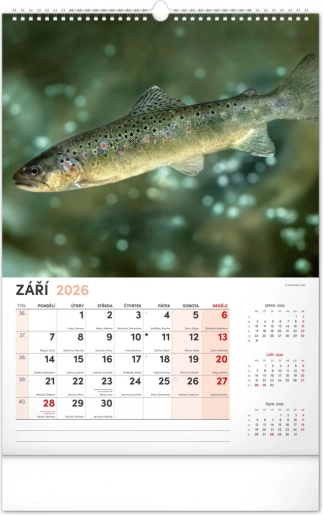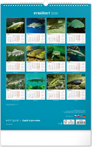Prinesite lepoto vodnega sveta v svoj dom z našim ribiškim koledarjem za leto 2026. Ta stenski koledar ponuja: