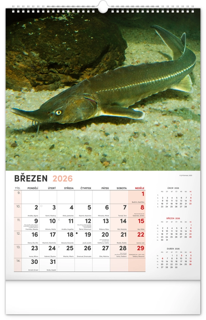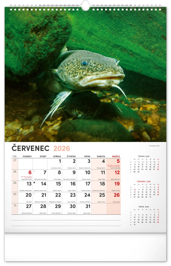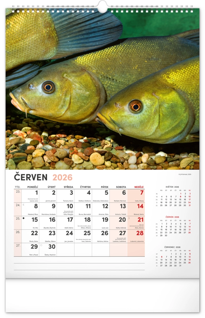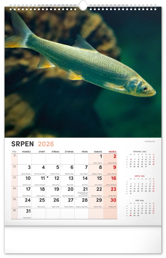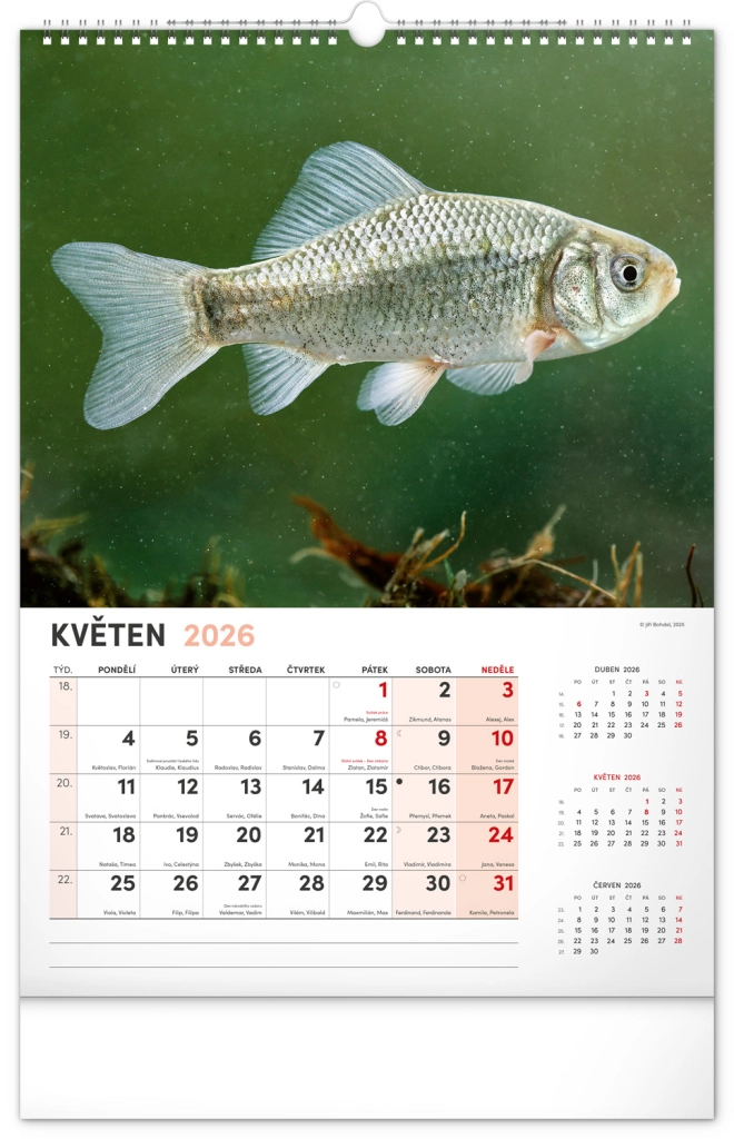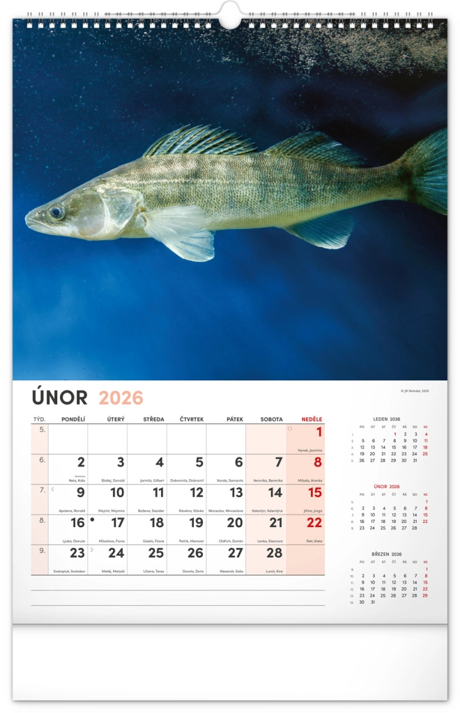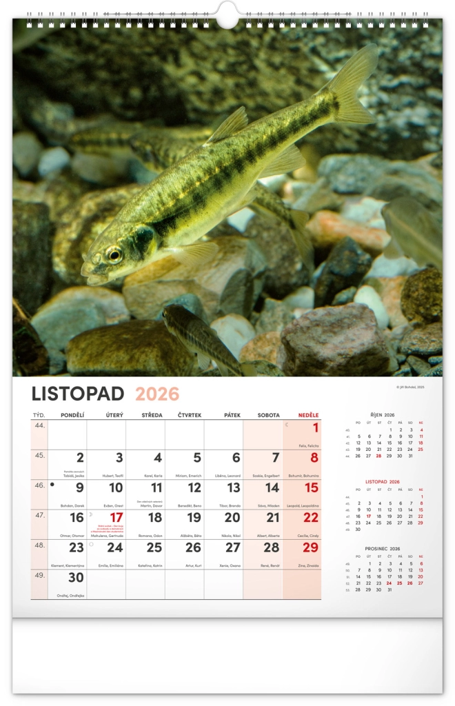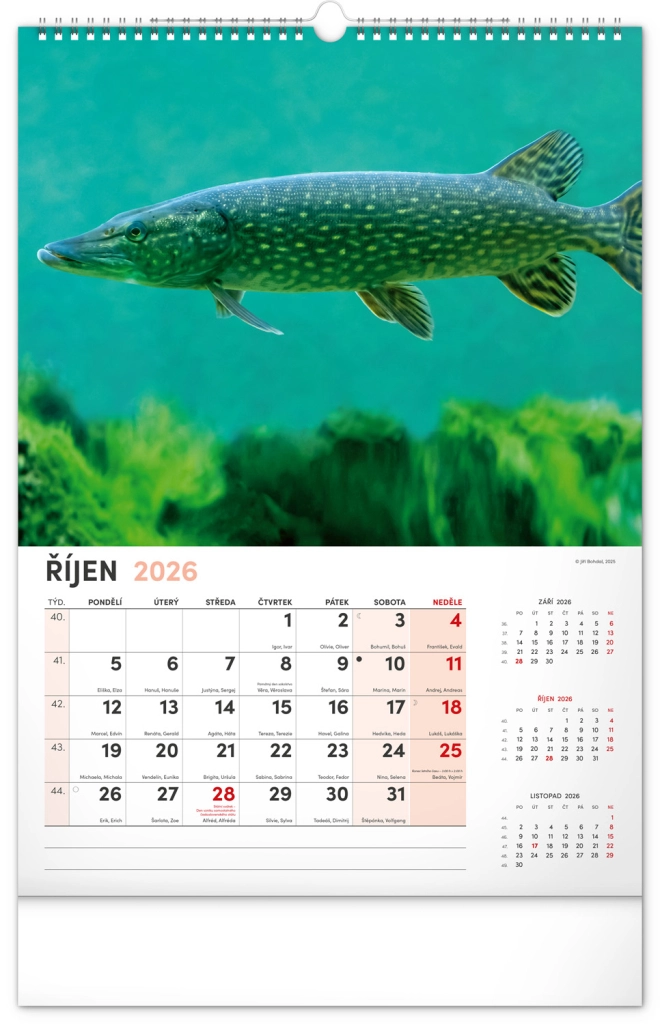 Prinesite lepoto vodnega sveta v svoj dom z našim ribiškim koledarjem za leto 2026. Ta stenski koledar ponuja: