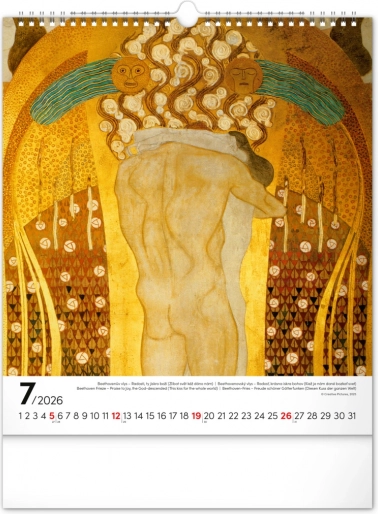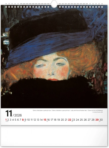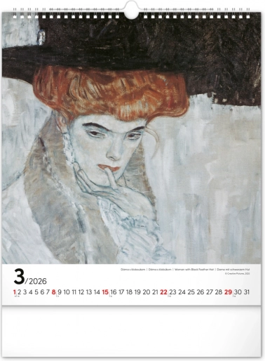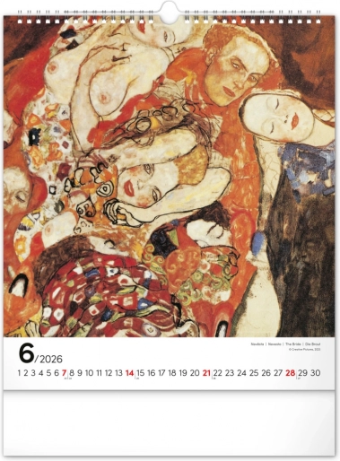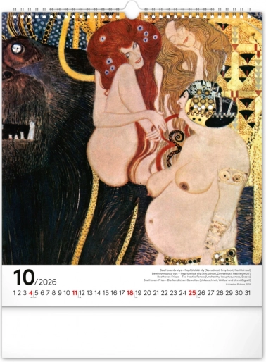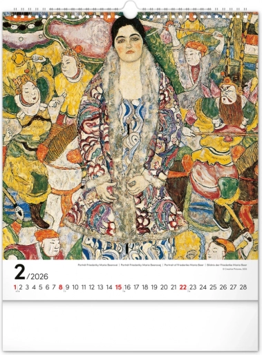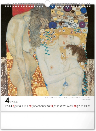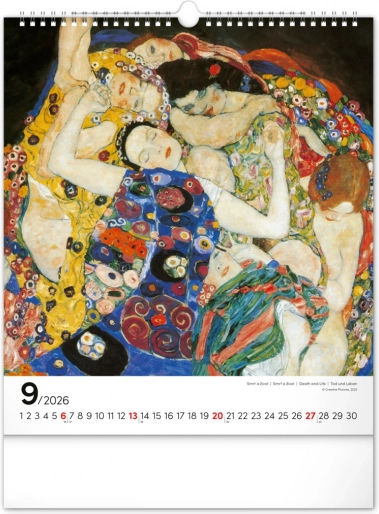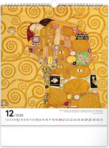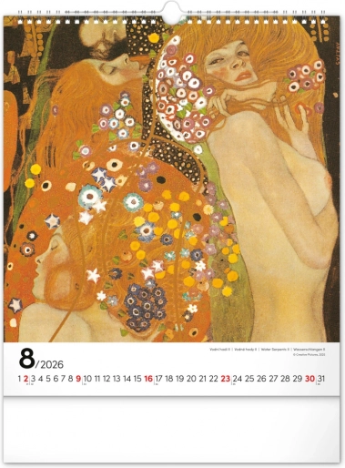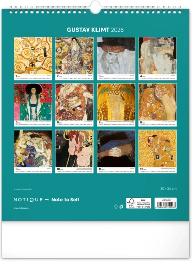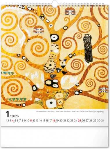 Eleganten stenski koledar z deli Gustava Klimta za leto 2026, ki bo postal odličen dodatek vašemu notranjemu prostoru. Koledar vsebuje čudovite reprodukcije slik, natisnjene na kakovostnem papirju, ki ujamejo lepoto umetnosti tega ikoničnega slikarja.