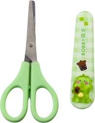 Otroške škarje v veseli zeleni barvi so ustvarjene za majhne roke. Zaradi ergonomskega oblikovanja ročajev so enostavne za uporabo in omogočajo natančno rezanje papirja ter tankih materialov, kar razvija ročne spretnosti otrok.