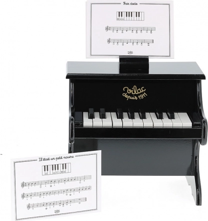 Lesen klavir VILAC je lepa in trpežna igrača za prve glasbene korake. Zaradi kompaktnih mer se odlično poda v otroško sobo, njegova elegantna črna izvedba pa očara na prvi pogled. Ni namenjen kot polnopraven glasbeni instrument, temveč kot kakovostna igrača za odkrivanje sveta tonov.