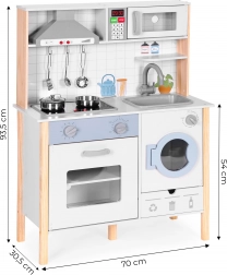 Odkrijte čar kuhanja z veliko leseno kuhinjo znamke ECOTOYS. Ta kuhinja ne le spodbuja ustvarjalnost in ročne spretnosti, temveč otrokom tudi omogoča, da se na zabaven in varen način učijo osnov kuhanja in priprave jedi. Idealna je za igro samostojno ali s prijatelji, kar prispeva k razvoju družbenih veščin.