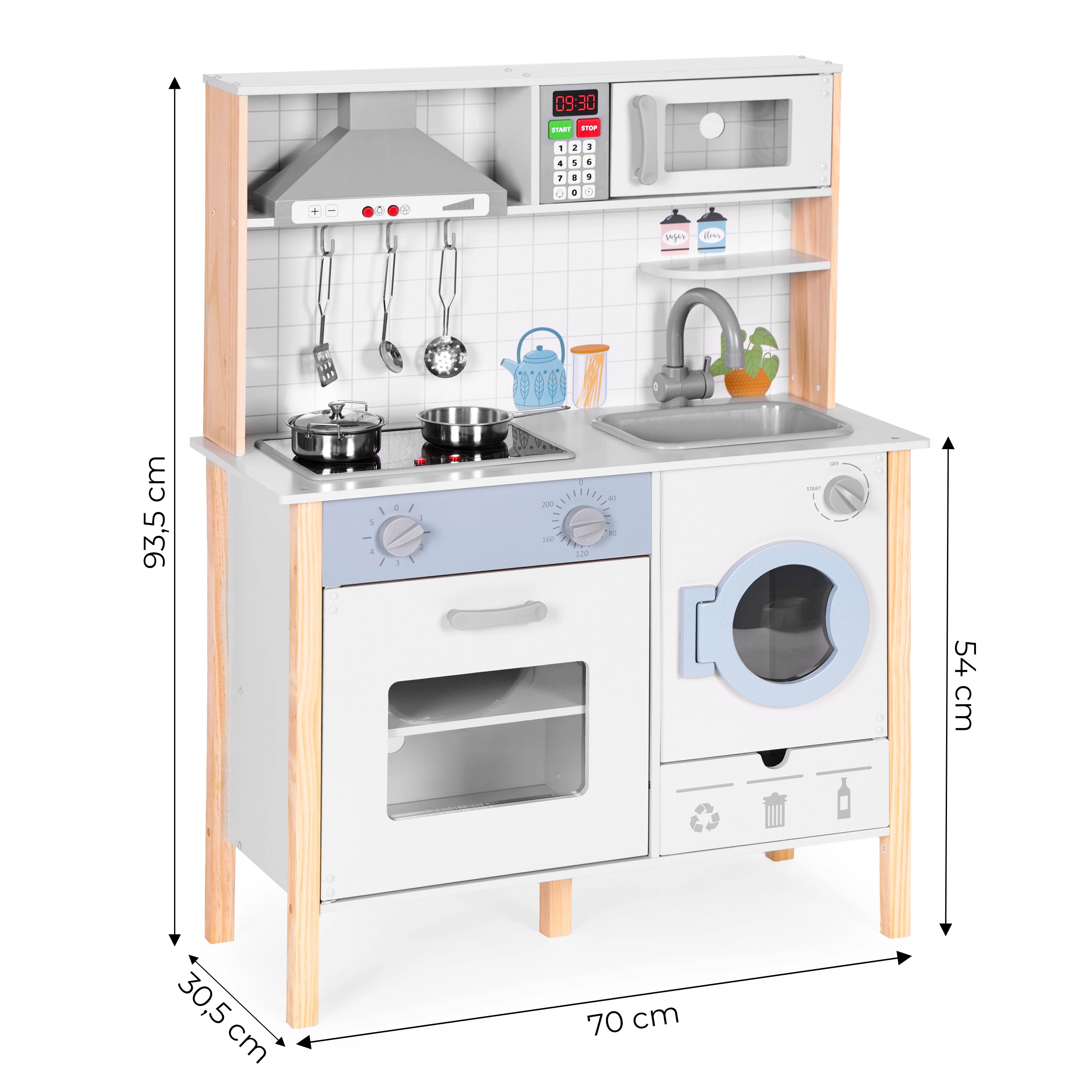 Kuhinja ponuja številne uporabne funkcije: od svetlobne in zvočne osvetlitve nape, preko pralnega stroja, do odpirajočih se kuhinjskih omaric. Igralni komplet vključuje tudi uporabna kuhinjska orodja, ki so priložena v paketu, da so otroci lahko takoj pripravljeni na igro.