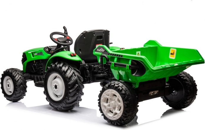 Uživajte v zunanjih pustolovščinah s tem akumulatorskim traktorjem, ki je priložen s prikolico in ponuja udobno ter zabavno vožnjo za vaše malčke.