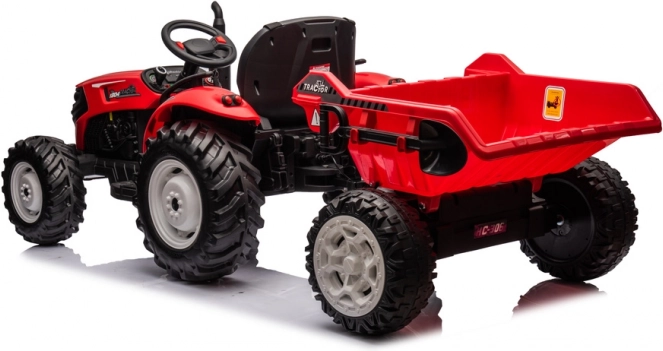 Ta rdeč električni traktor s prikolico je odlična izbira za male kmetovalce. Ponuja močan akumulator z napetostjo 24V, ki zagotavlja dolgotrajno vožnjo. Stilsko oblikovanje v rdeči barvi pritegne pozornost otrok in jim pričara občutek pravega traktorja.