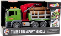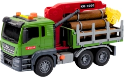 Tovornjak v merilu 1:14 je opremljen s premičnimi deli in interaktivnimi funkcijami, kot so svetlobni in zvočni učinki – zvoki vzvratne vožnje, opozorilni signal, hupa in utripajoče opozorilne luči. Upravljati ga je mogoče ročno, roka žerjava ima gumbe za dviganje in spuščanje lesenih hlodov, kar spodbuja domišljijo in razvija ročne spretnosti.