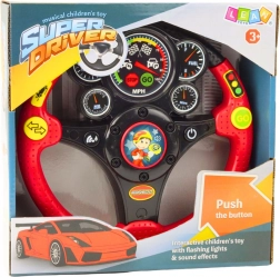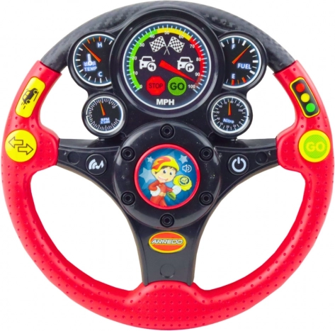 Z zvočnimi učinki troblje, smernikov ali vožnje ter osvetljenimi instrumenti ima otrok možnost interaktivne in realistične igre. Volan vsebuje 7 funkcijskih gumbov, od katerih vsak aktivira različne učinke – od zvokov motorja, svetlobe, do melodij in vibracij. Gumb ON/OFF v obliki zagona motorja omogoča otroku začetek igre, kot da bi bil v pravem avtomobilu. Osvetlitev imitacije instrumentov in realistične vibracije še okrepijo občutek prisotnosti v notranjosti vozila. Igrača odlično spodbuja razvoj čutov, koordinacijo gibanja in vida ter domišljijo.