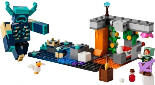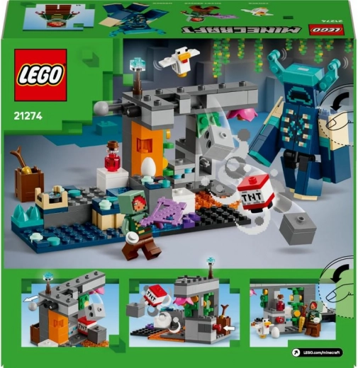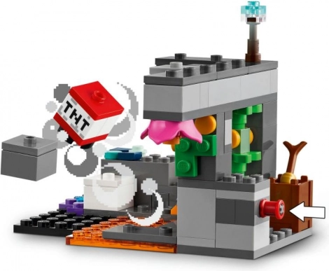 Odkrijte živahen svet LEGO Minecraft v bujni jami, polni zakladov in pasti. Zgradite prizor z lavo, vodo in rastlinjem, odkrijte skrite diamante in ametiste ter se pripravite na spopad z obzidanim Varuhom. Zaradi gibljive glave, rok in nog je boj izjemno realističen.