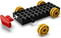 Dirkalni avtomobilček z velikimi kolesi in prostorom za raketo zadaj doda igri hitrost, vratolomne trike in obilo domišljije.