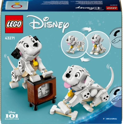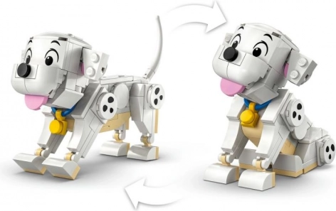 Razvajajte male graditelje in ljubitelje živali s prikupnim kompletom LEGO Disney 101 dalmatincev: mladička Lucky (Štistko) in Penny. Dva sestavljiva dalmatinca z gibljivimi glavami, nogami in repi, poleg tega pa še kost iz kock in majhen retro televizor za domišljijsko igro. Odlična kreativna zabava, čudovita dekoracija na polici ter možnost kombiniranja z drugimi kompleti LEGO in LEGO Disney.