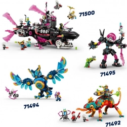 Set je poln podrobnosti: izstreljevalniki kock, odpirajoč se kokpit in zamenljivi moduli, ki jih lahko kombinirate z drugimi seti LEGO DREAMZzz. Vključuje pet minifiguric – Mateo, Cooper, gospod Oz, One in D‑Shock – plus figurico Alberta in dva kiberpajka‑požiralca možganov za res dinamične prizore.