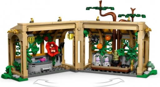 Zgradite podroben rastlinjak/učilnico, ki se razpre za boljši dostop in igro. Dve snemljivi mizi sta opremljeni s čarobnimi rastlinami in orodjem, medtem ko iz »počenega« okna kuka drevo. Posebne mandragore je mogoče vzeti iz lončkov, minifigure pa jih lahko držijo za liste – kot nalašč za ikonične prizore iz BRADAVIČARKE.