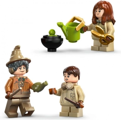 Set vsebuje tri priljubljene like – Nevilla, Hermiono in profesorico Spitno – skupaj z dodatki, kot so slušalke proti kriku mandragor, zalivalka, škarje, kotel in še več. Zaradi premišljenih podrobnosti in številnih dodatkov komplet ponuja dolge ure kreativnega pripovedovanja zgodb in fantastične igre vlog.