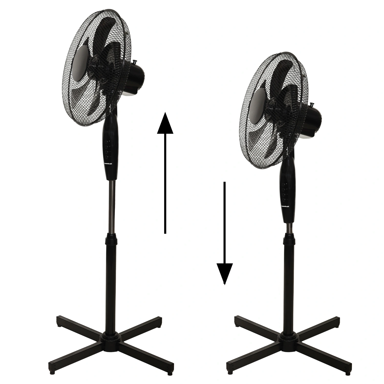 Z gladkim nastavljivim višinskim obsegom od 110 do 130 cm lahko ventilator enostavno postavite kamorkoli – poleg kavča, postelje ali mize. Tako zagotavljate optimalno kroženje zraka po celotnem prostoru. V kombinaciji z nastavljivim naklonom in oscilacijo imate popoln nadzor nad smerjo in natančnim hlajenjem.