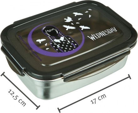 Škatla za malico Wednesday iz nerjavnega jekla, 550 ml, s praktičnim prozornim pokrovom. Idealna za šolska kosila in malice.