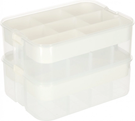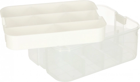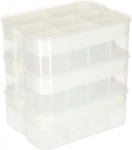 Organizer ponuja fleksibilne možnosti shranjevanja zahvaljujoč svojim trem nivojem, kar omogoča, da ostanejo vse vaše stvari organizirane in pregledne. Izdelan je iz kakovostne plastike, ki zagotavlja dolgo življenjsko dobo in trpežnost.