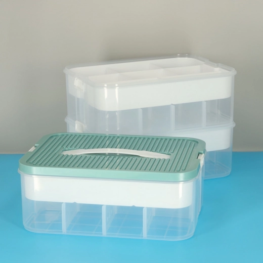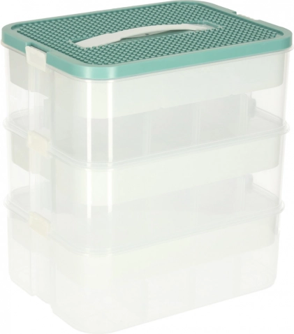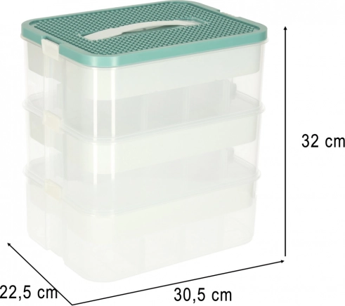 Organizer za igrače je idealna rešitev za urejanje in shranjevanje vaših stvari. Sestavljen je iz treh prozornih posod, pokrovov z izboklinami in prilagodljivih predelkov, ki vam omogočajo, da prostor enostavno uredite po potrebi.