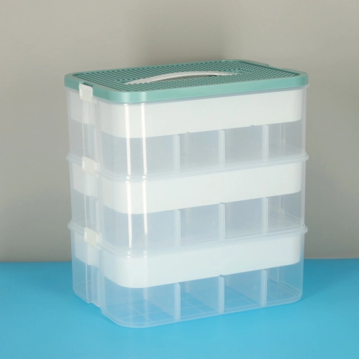 Organizer za igrače, kocke in drobnarije s pokrovom in predelki, 3 nivoji
