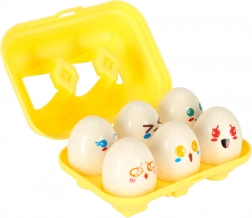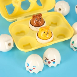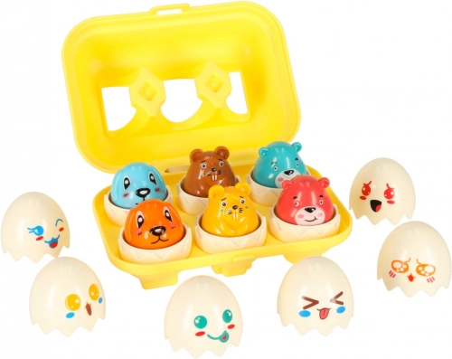 Zabava s temi jajčki je pravo razvrščanje oblik, ki podpira učenje skozi igro. Otrok se uči prepoznavati različne oblike, poimenovati barve in logično razmišljati, kateri del kam sodi – to je prava kreativna edukacija skozi igro!