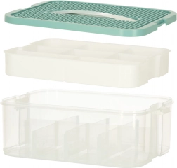 Organizator je izdelan iz trpežne plastike, medtem ko turkizen pokrov poskrbi za privlačen videz.