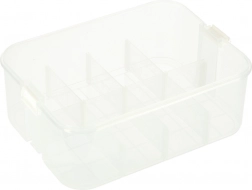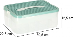 Ta organizator je idealna rešitev za vse, ki želijo ohraniti red med igračami, sestavljankami ali drugimi drobnarijami. Vsebuje prozorno shranjevalno škatlo z robustnimi zaponkami za varno shranjevanje vsebine.