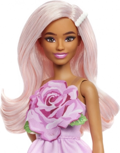 Odkrijte čar mode s punčko Barbie Fashionistas v nežnih rožnatih oblačilih z veliko aplikacijo vrtnice. Zahvaljujoč raznolikim slogom, gibljivim okončinam in odstranljivim dodatkom spodbuja otroke k ustvarjalni igri in samopredstavitvi. Modna rožnata barva las s perlasto sponko in ujemajoči se rožnati sandali naredijo to Barbie idealno darilo za male ljubitelje mode.