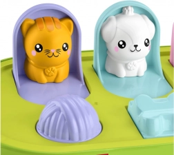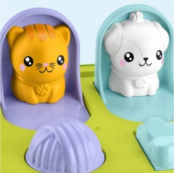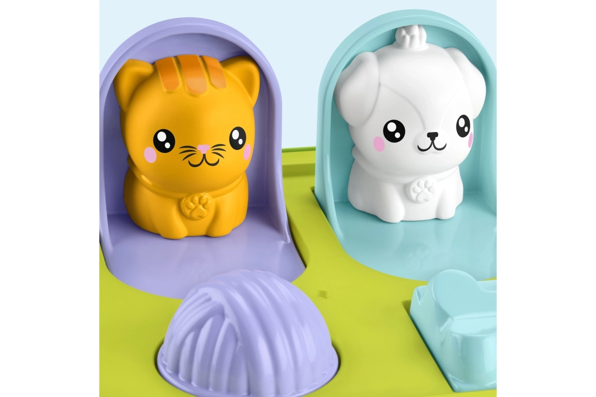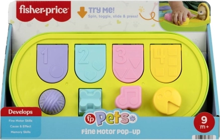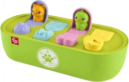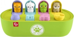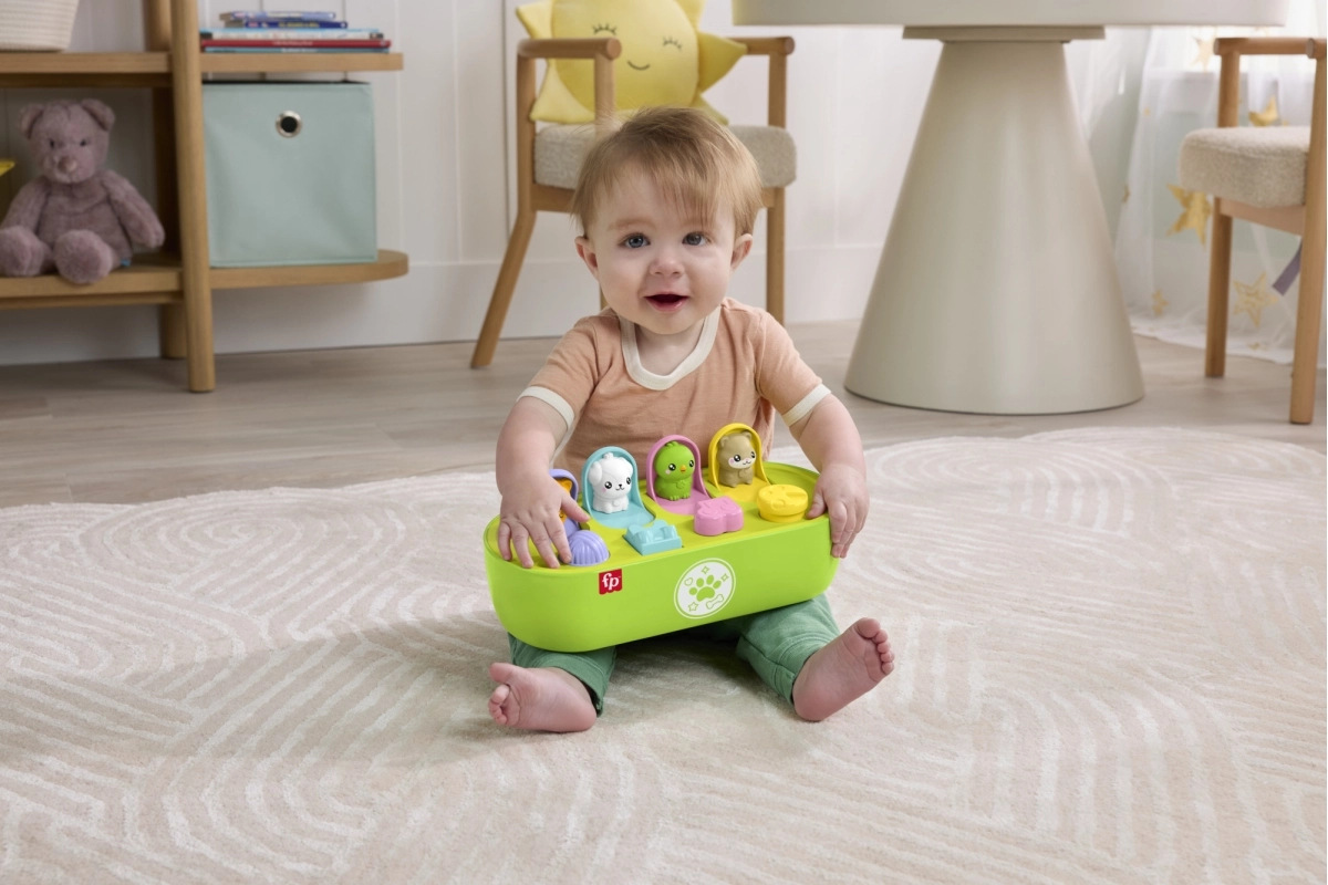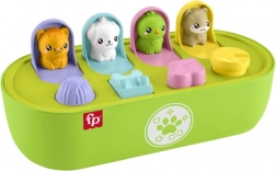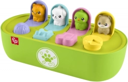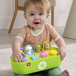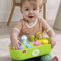 Ta barvita izskočna igra z živalskimi figuricami otrokom ponuja neskončna odkritja: vsakemu okencu ustreza drugo gibanje – pritisk, pomik, vrtenje ali preklop. Za vsak pravilen gib sledi nagrada v obliki poskočene prijateljice, kar spodbuja razumevanje vzroka in posledice ter vadi koordinacijo oko–roka.