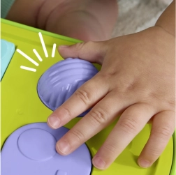 Pestre tipke in teksture spodbujajo oprijem, spretnost prstkov ter koordinacijo oko–roka. Idealno za vsakodnevni trening veščin.