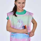Otroški predpasnik Mavrični Samorog je idealen za likovno vzgojo, delovne aktivnosti in druge krožke. Odlikuje ga pralen material in dva žepa za shranjevanje drobnarij.
